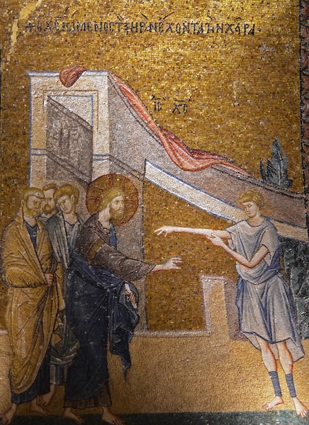 The Healing of the Man with the Withered Hand, 1316–20, mosaic. Monastery of Chora, fourth bay of the inner narthex, south wall, Constantinople/Istanbul (Turkey). Photo: courtesy of David Hendrix/The Byzantine Legacy